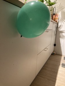Houd de ballon nu tegen de muur of bijvoorbeeld een kast aan en kijk of je de ballon los kunt laten zonder dat hij naar beneden valt!